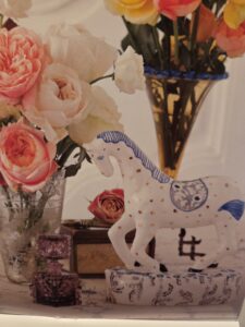 年があらたまったよー。うま年だよー。 と、1月のカレンダーなので、お花の中に馬の置物がおかれているのだと思うのですが、
